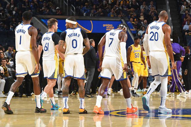 着实有点尴尬了,这两场比赛的共同点是,勇士后场篮板保护极差。就举一个例子,和开拓者一战,格林+霍福德一共抢到3个篮板球,开拓者首发中锋克林根,打了11分钟,拿到6个前场篮板。开拓者可不是森林狼、快船、雷霆、火箭这些一线豪门,那意味着勇士新赛季护框下限只会更低!科尔面临两难选择,拿上霍福德,他的体能不足以支撑首发的出场标准,只能是伪首发角色。但除了四位老人之外(霍福德39岁+库里37岁+巴特勒36岁+格林35岁),最后一个名额该属于谁?打湖人表现最好的穆迪,打开拓者在场输10分。