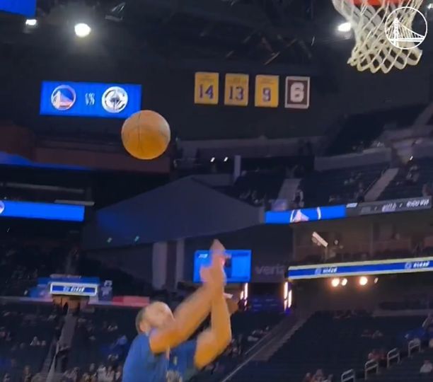 整活儿!库里热身时完成排球式自抛自扣