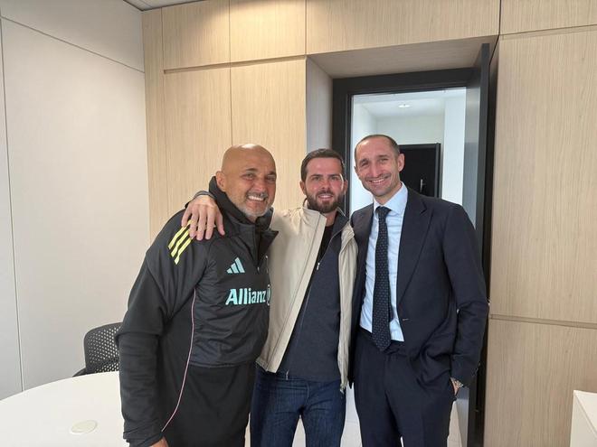 皮亚尼奇重返尤文训练基地,与斯帕莱蒂、基耶利尼合影
